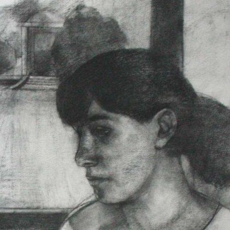 Bridget Macdonald, Sonia at Witley Court, charcoal on paper, 1991