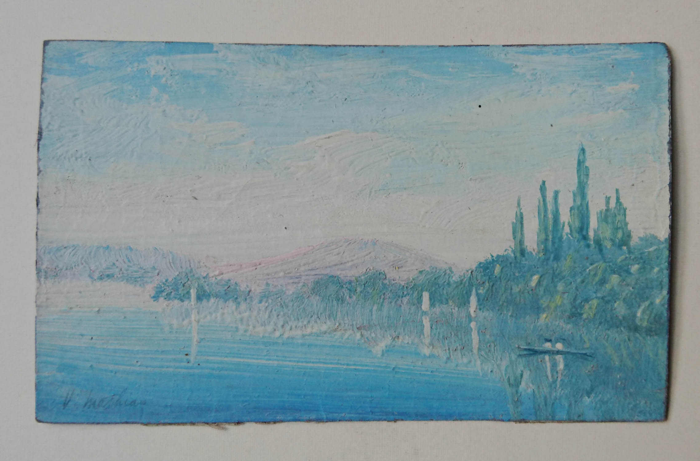 Mathias was born in Haverfordwest, in the south west of Wales, and established a reputation as an accomplished landscape painter in a loose, 20th century impressionist style. He painted extensively in the south of France, which is possibly the location for this view.